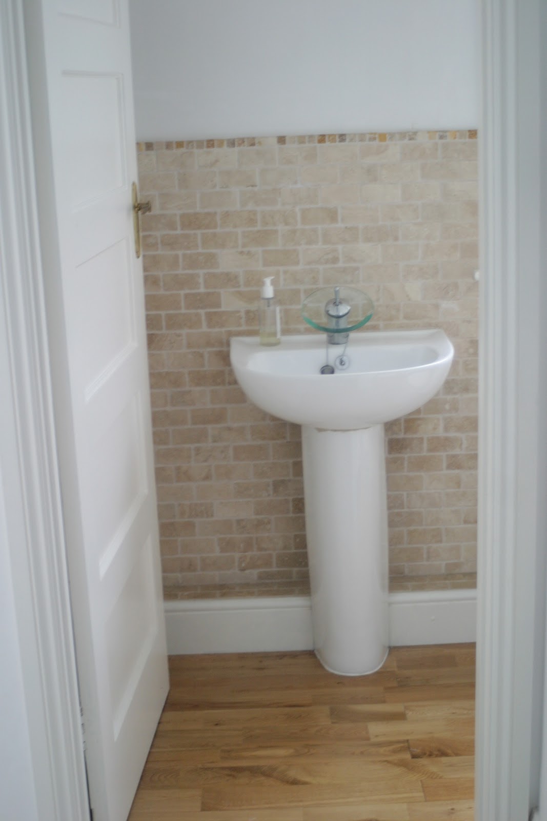 I've been promising my husband he can start to take things easier now that pretty much all the DIY work has been completed on the house. So he wasn't best pleased to find out my new tap would lead to a new sink and of course I wasn't going to be satisfied with just a basin and pedestal combination. Oh no , I've had my eye on built in wooden cupboard vanity unit for some time .